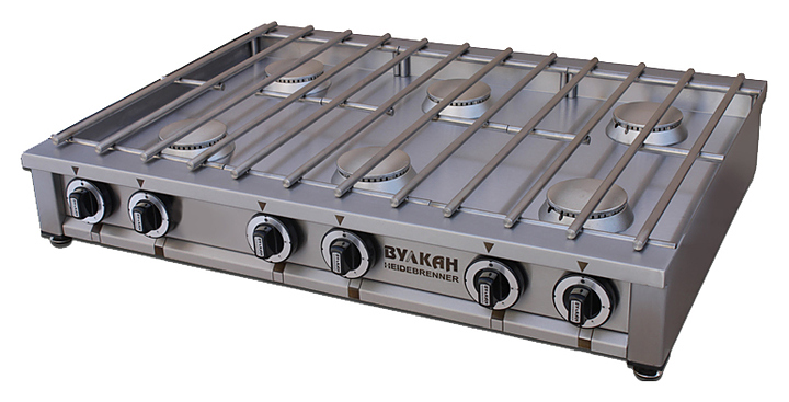 Газовая плита Вулкан ПРГ-IIA-6М Slim предназначена для приготовления первых, вторых и третьих блюд в наплитной посуде на предприятиях общественного питания и торговли. Модель оснащена газ-контролем. Корпус и решетка выполнены из нержавеющей стали, газовые горелки - из латуни. Особенности: