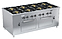 Газовая плита Вулкан ПРГ-IIA-8 2ДШ Maxi предназначена для приготовления первых, вторых и третьих блюд в наплитной посуде, выпечки хлебобулочных и кондитерских изделий на предприятиях общественного питания и торговли. Модель оснащена 2 духовыми шкафами, газ-контролем, пьезорозжигом и запальной горелкой. Корпус выполнен из нержавеющей стали, решетка - из чугуна. В комплект поставки входят 4 противня из нержавеющей стали размером GN 2/1 (530х650х40 мм). Особенности: