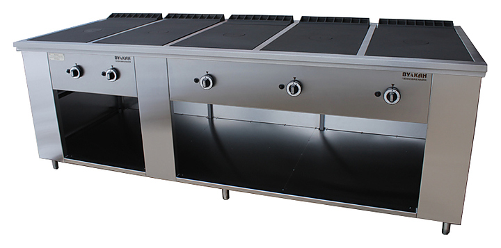 Компания Вулкан совместно с немецким производителем HEIDEBRENNER GmbH разрабатывает и выпускает тепловое оборудование для профессиональной кухни: газовые плиты и жарочные шкафы, пищеварочные котлы, фритюрницы, блинницы, оборудование для китайской кухни, плиты ВОК и Теппан-яки, лавовые грили, газовые горелки для казанов и пр. |