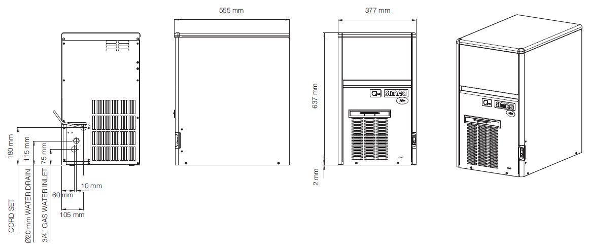 Льдогенератор SIMAG SDE 34 AS используется на предприятиях общественного питания и торговли для приготовления пальчикового льда, предназначенного для охлаждения коктейлей и напитков или приготовления шейков и смузи. Корпус выполнен из нержавеющей стали. Особенности: