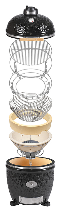 Керамический гриль Monolith Grill Classic Pro 101002-R предназначен для приготовления блюд на древесном угле в частных домах и на предприятиях общественного питания. Модель сочетает в себе 5 видов оборудования для высокотемпературного приготовления пищи: мангал, тандыр, барбекю, гриль и коптильня. Корпус покрыт специальной глазурью, защищающей от выцветания на солнце и воздействия атмосферных осадков. При эксплуатации гриля НЕ используйте жидкость для розжига и прессованный уголь, используйте только сухой спирт или специальные брикеты для розжига и топите ДРЕВЕСНЫМ углем. Комплектация: