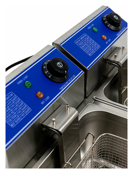Фритюрница GASTRORAG HEF-82A предназначена для приготовления различных продуктов в большом количестве масла на предприятиях общественного питания и торговли. Модель оснащена электромеханической панелью управления с термостатом, перфорированным фальш-дном, защищающим открытый ТЭН от контакта с корзиной, и резиновыми ножками. Корпус выполнен из нержавеющей стали. В комплект поставки входят фритюрные корзины с крышками. Дополнительные характеристики: