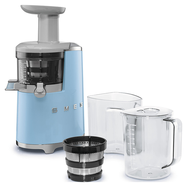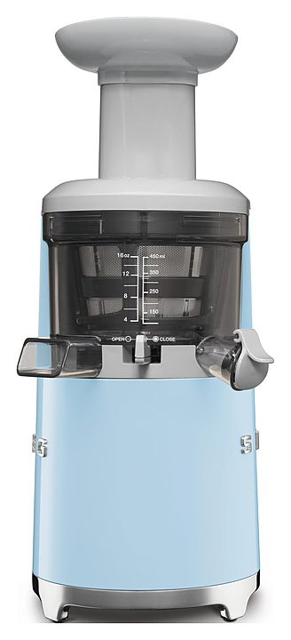 Шнековая соковыжималка Smeg SJF01PBEU предназначена для приготовления пюре, ореховой пасты, коктейлей и соков из фруктов, овощей, ягод, трав, иголок хвойных деревьев, пророщенных семян овса, пшеницы, ржи и чечевицы в частных домах и квартирах. Модель выполнена в стиле 50-х годов. Шнек и чаша отжима изготовлены из ULTEM™, рычаг включения - из стали. Комплектация: