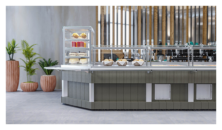 Холодильная витрина Refettorio Capital RC21A используется в составе линии раздачи Capital на предприятиях общественного питания и торговли для кратковременного хранения, демонстрации и раздачи холодных напитков, салатов, кисломолочных продуктов, кондитерских изделий, десертов и других блюд, требующих хранения в охлажденном состоянии. Модель оснащена 3 вместительными внутренними полками. Столешница выполнена из нержавеющей листовой стали толщиной 1,2 мм, фасад - из ламинированного МДФ.