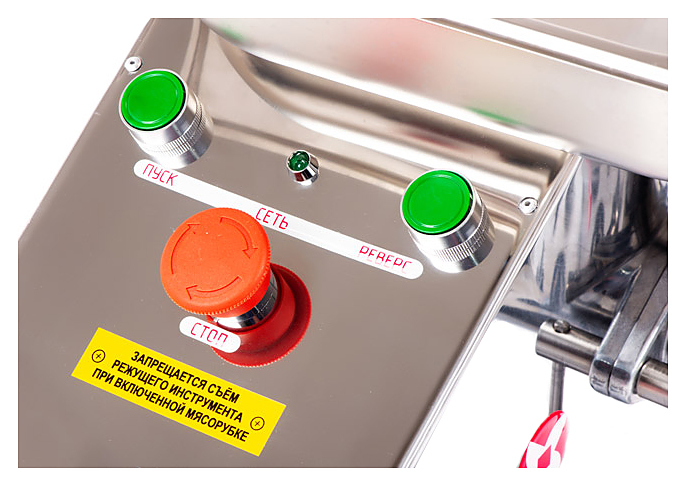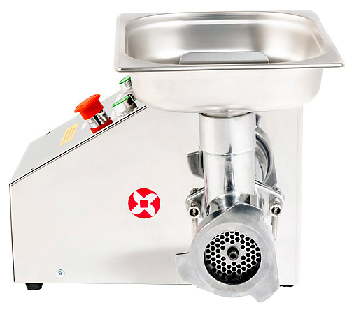 Мясорубка ТОРГТЕХМАШ ТМ-12М используется на предприятиях общественного питания и торговли для измельчения мяса и рыбы при производстве фарша. Модель оснащена функцией Реверс, исключающей необходимость разборки мясорубки при попадании костей в горловину и наматывании жил на шнек. Облицовка корпуса выполнена из нержавеющей стали, ножи и решетки - из высококачественной нелегированной инструментальной стали марки У8А ГОСТ 1435 с твёрдостью поверхностей 52-59 HRC. В комплект поставки входят подрезной нож, 2 двусторонних ножа, 2 решетки с отверстиями, вилка и насадка для купат. Особенности: