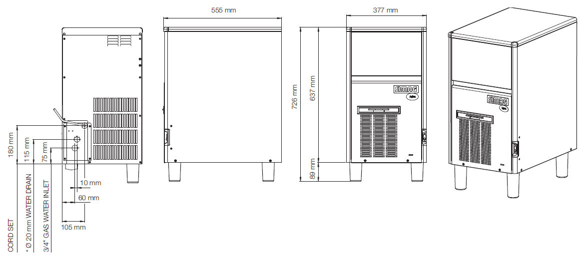 Льдогенератор SIMAG SDE 40 AS используется на предприятиях общественного питания и торговли для приготовления пальчикового льда, предназначенного для охлаждения коктейлей и напитков или приготовления шейков и смузи. Корпус выполнен из нержавеющей стали. Особенности: