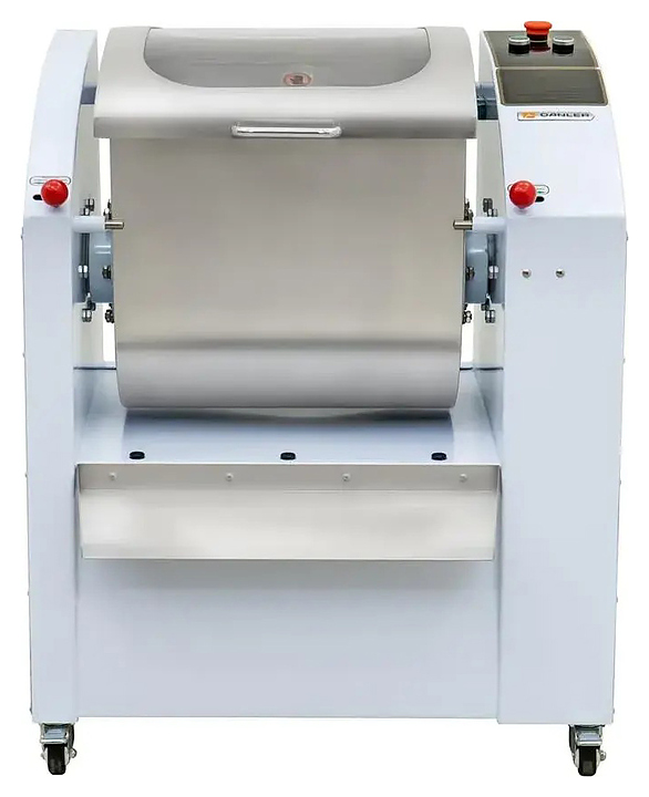 Тестомесильная машина Danler PG-55 H используется в пекарнях, кондитерских, на предприятиях общественного питания и торговли для замешивания различных масс высокой вязкости, таких как: густой фарш, творог, крутое тесто для полуфабрикатов (пельменей, вареников, хинкалий), медовое пряничное тесто и др. Корпус модели изготовлен из молотковой эмали, дежа - из нержавеющей стали, все детали, соприкасающиеся с мукой, никелированные. Особенности: