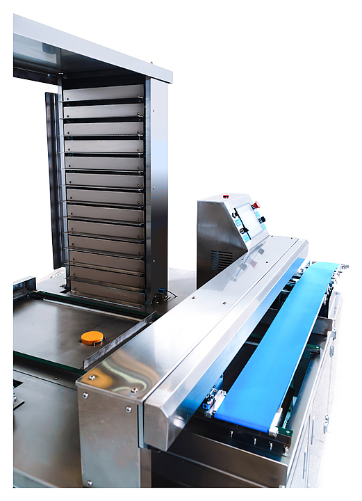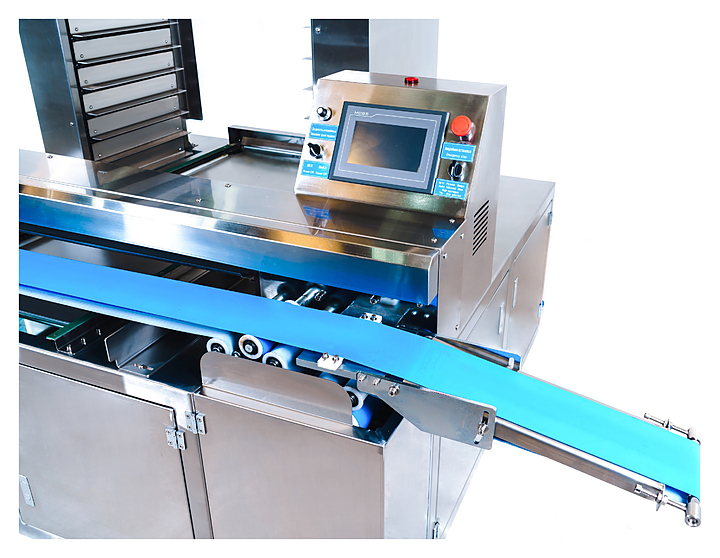 Укладчик на противни Danler GS-500 используется на предприятиях пищевой промышленности, в пекарнях и кондитерских в качестве модуля технологической линии для перекладывания изделий из одного ряда поточной кондитерской линии в несколько рядов на противень. Корпус выполнен из нержавеющей стали SUS 304. Особенности: