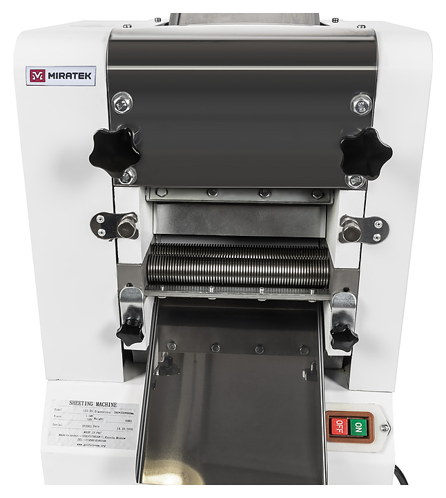 Лапшерезка Miratek KX-35 используется на предприятиях общественного питания и торговли для тонкой раскатки теста и приготовления лапши различной формы: круглой и «квадратной», с гибким диапазоном регулирования ее диаметра и ширины. Устройство оснащено мощным двигателем, обеспечивающим его надежную и бесперебойную работу. В комплект поставки входят ножи для нарезания лапши с ОДНИМ размером на выбор: квадратные 1,5 мм, 3 мм, 4 мм, 6 мм или круглые 2 мм. Особенности: