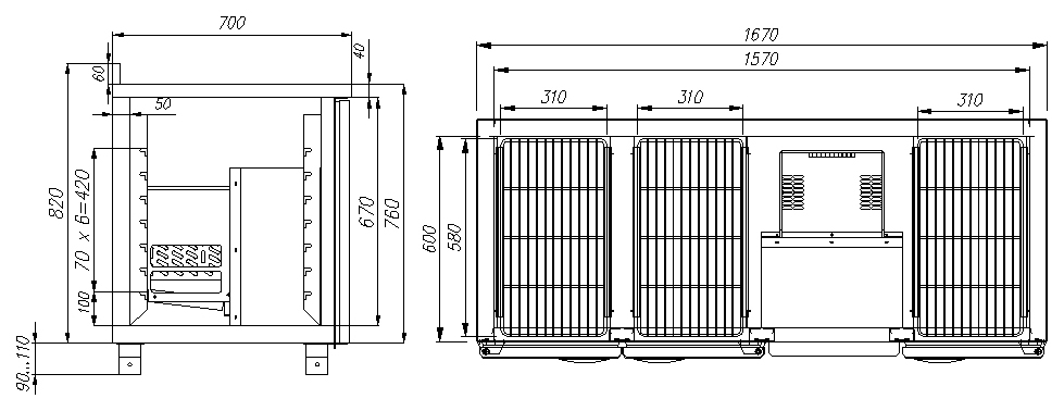 Холодильный стол Carboma T70 M3-1 9006-2 (3GN/NT 333) предназначен для раскатки теста, обработки ингредиентов для приготовления блюд, охлаждения и кратковременного хранения скоропортящихся продуктов и напитков на предприятиях общественного питания и торговли. Модель оснащена дверью с доводчиком и регулируемыми по высоте ножками высотой от 90 до 110 мм. Цельнозаливной корпус выполнен из оцинкованной стали толщиной 50 мм, столешница - из нержавеющей стали. Особенности: