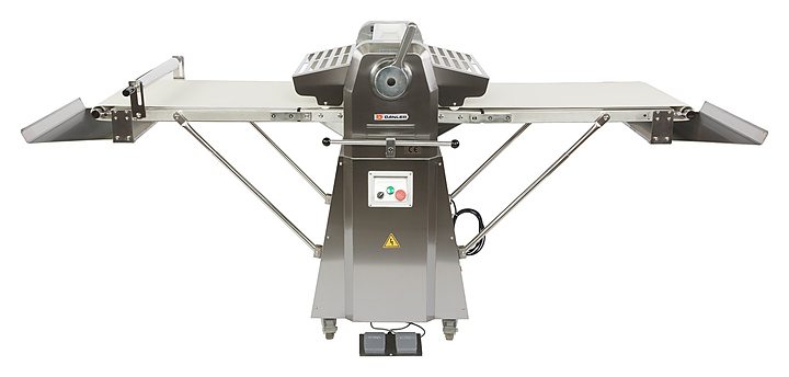 Тестораскаточная машина Danler KDF-650 используется в пекарнях, кондитерских, на предприятиях общественного питания, пищевой промышленности и торговли для раскатки различных видов теста: слоеного дрожжевого и бездрожжевого, песочного и получения равномерно раскатанного пласта теста необходимой толщины. В комплект поставки входит скалка для установки на конвейерный стол. Особенности: