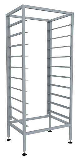 Тележка-шпилька Пищевые Технологии 635х475х1510 предназначена для хранения поддонов и лотков с пищевыми продуктами на предприятиях общественного питания и торговли. Модель оснащена стопорами на направляющих для предотвращения выскакивания емкости и регулируемыми по высоте ножками. Сварной каркас выполнен из трубы, покрытой порошковой краской, направляющие - из листового металла. Дополнительные характеристики:
