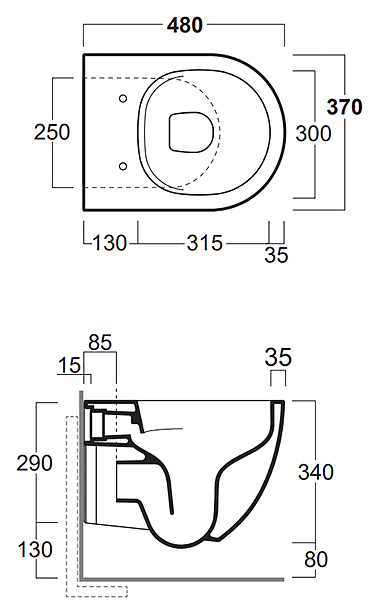 Унитаз подвесной SIMAS Vignoni XS 37х48 см, белый (без креплений F85)